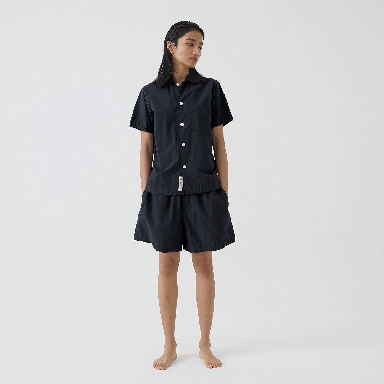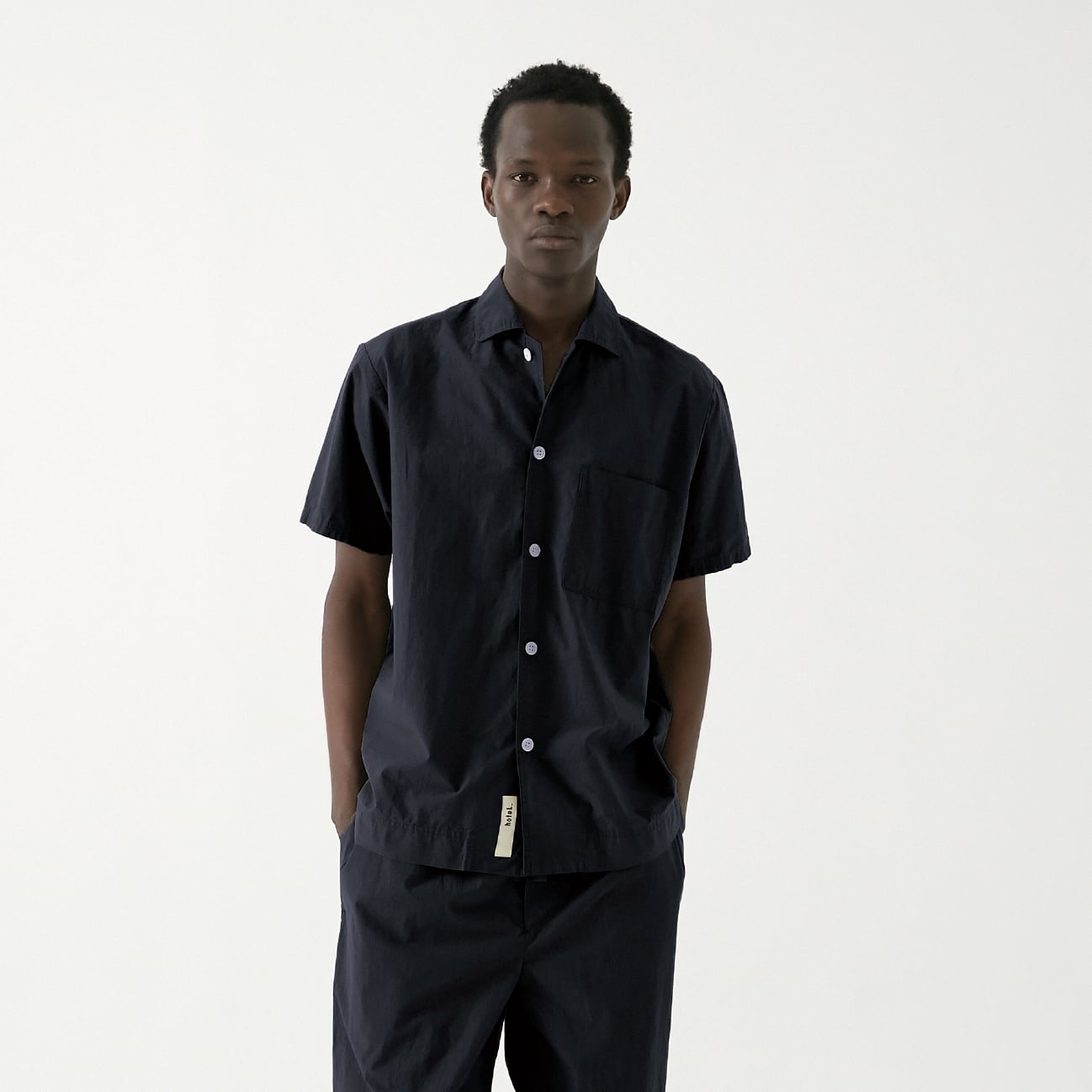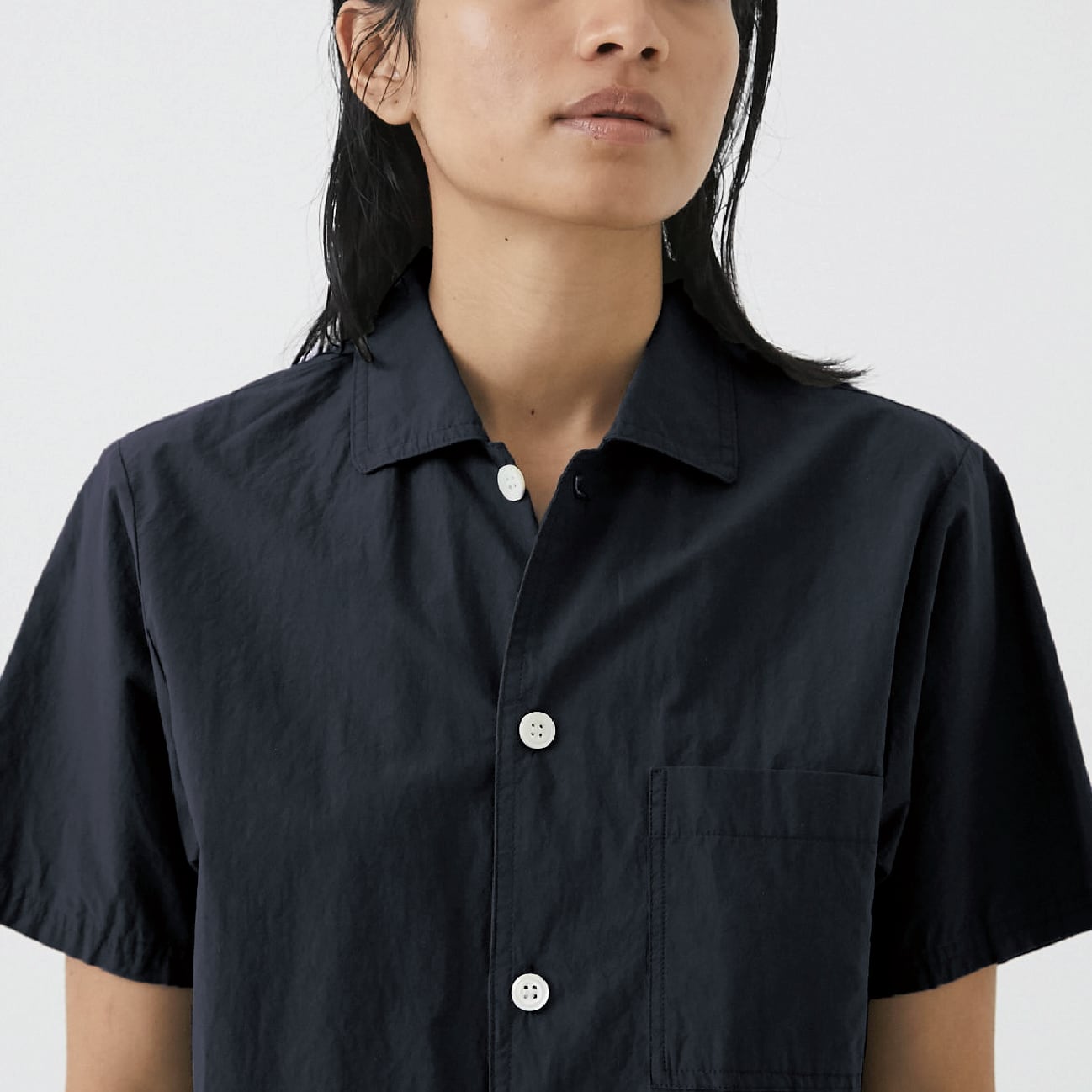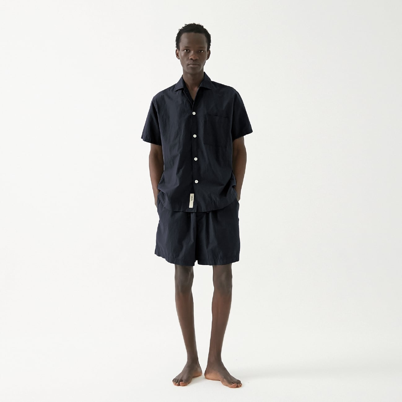 ヴィンテージライクな風合いが魅力のパジャマシャツ。軽くて上質なコットン素材が肌触りよく、洗うたびに風合いと愛着が楽しめる一着です。身体の動きを妨げないシルエットで、汗をしっかり吸収し、快適な睡眠をサポートしてくれるのと、休日や旅先でもワンマイルウェアとしても活躍します。