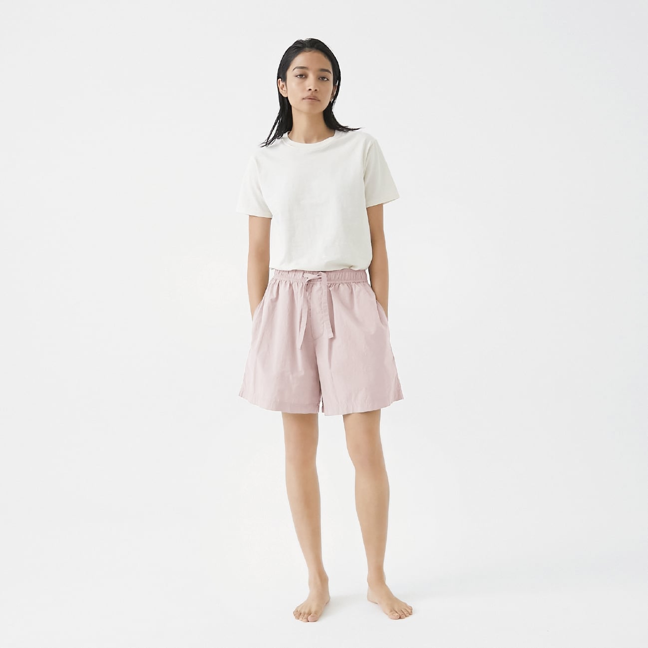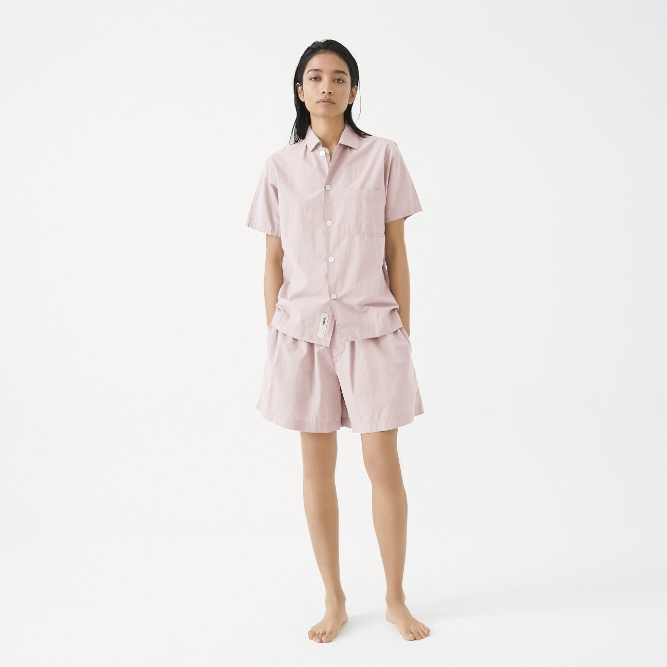 ヴィンテージライクな風合いが魅力のパジャマショートパンツ。軽くて上質なコットン素材が肌触りよく、洗うたびに風合いと愛着が楽しめる一着です。身体の動きを妨げないシルエットで、汗をしっかり吸収し、快適な睡眠をサポートしてくれるのと、休日や旅先でもワンマイルウェアとしても活躍します。