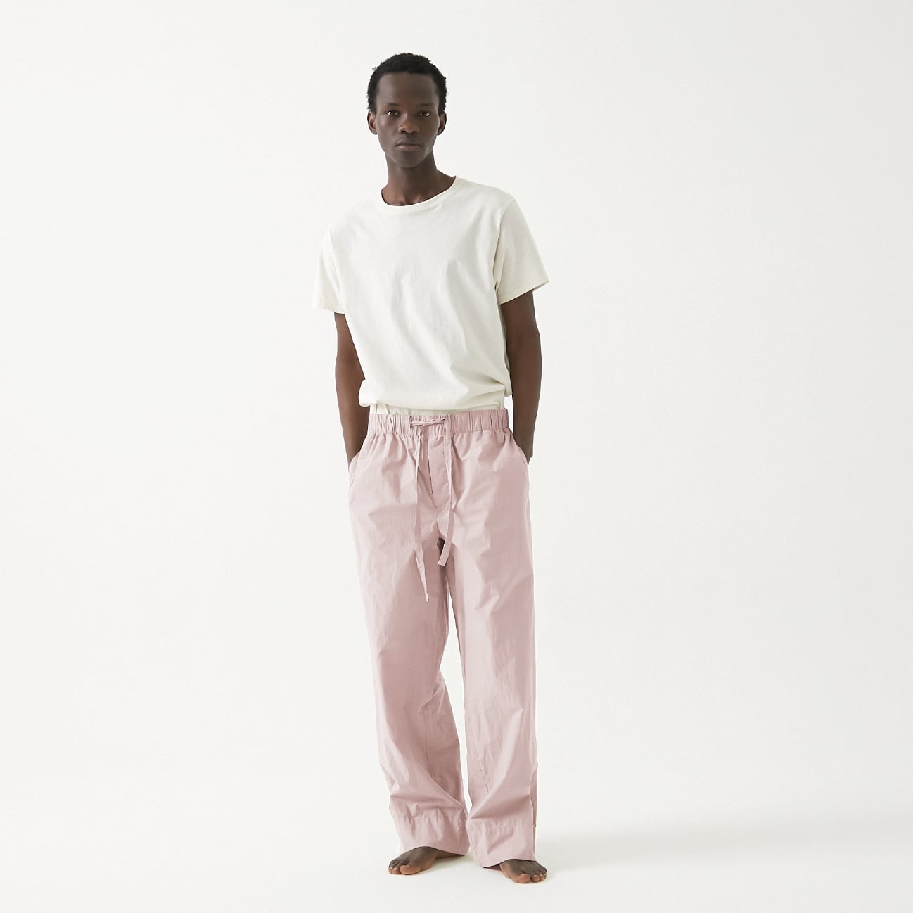 ヴィンテージライクな風合いが魅力のパジャマパンツ。軽くて上質なコットン素材が肌触りよく、洗うたびに風合いと愛着が楽しめる一着です。身体の動きを妨げないシルエットで、汗をしっかり吸収し、快適な睡眠をサポートしてくれるのと、休日や旅先でもワンマイルウェアとしても活躍します。