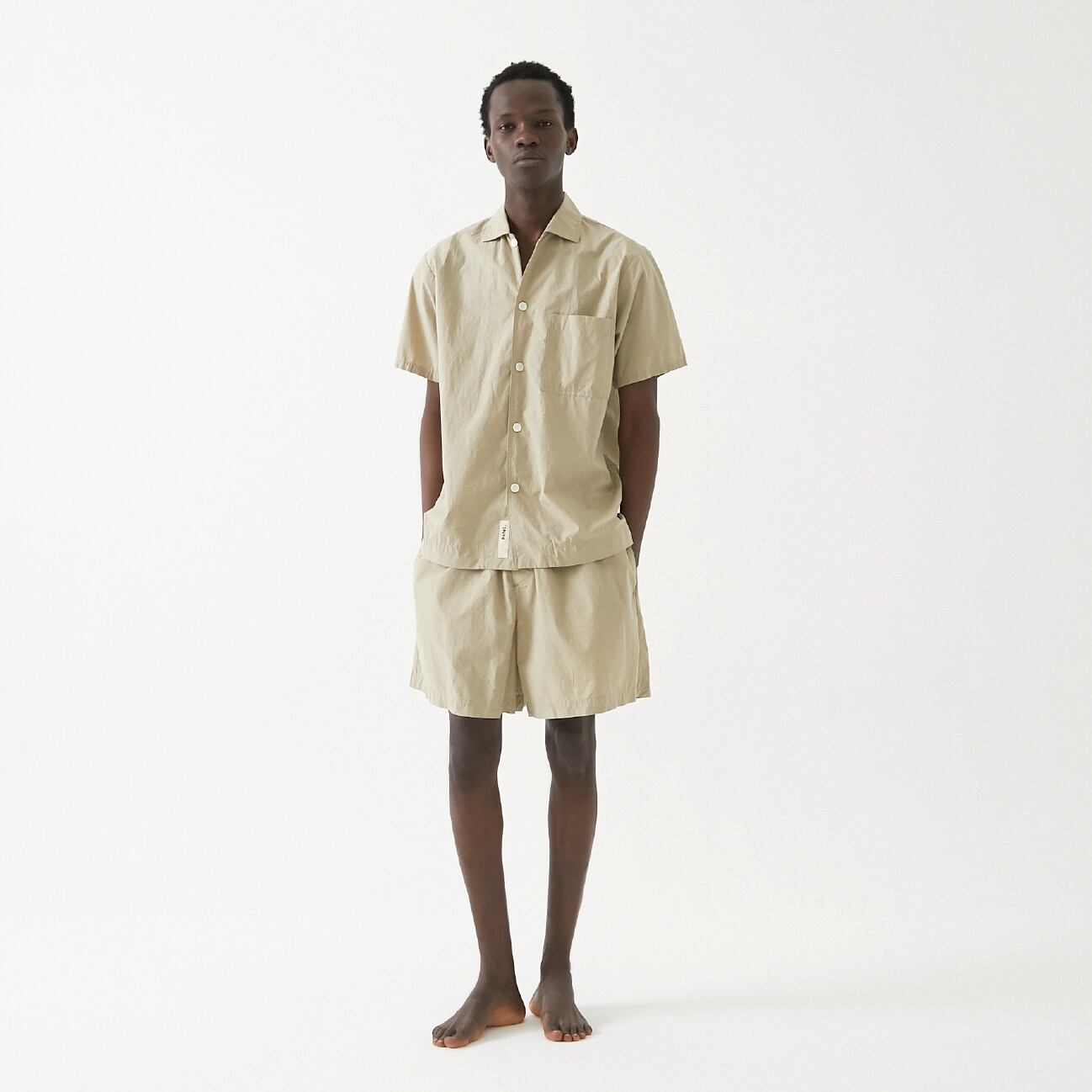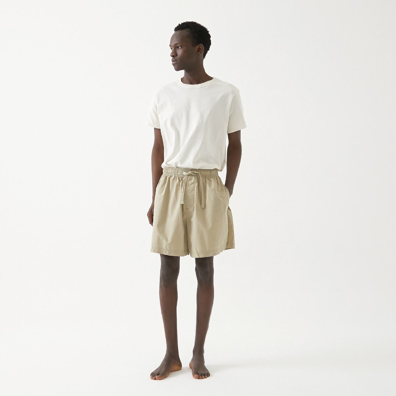 ヴィンテージライクな風合いが魅力のパジャマショートパンツ。軽くて上質なコットン素材が肌触りよく、洗うたびに風合いと愛着が楽しめる一着です。身体の動きを妨げないシルエットで、汗をしっかり吸収し、快適な睡眠をサポートしてくれるのと、休日や旅先でもワンマイルウェアとしても活躍します。