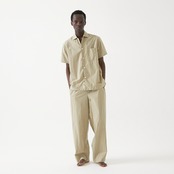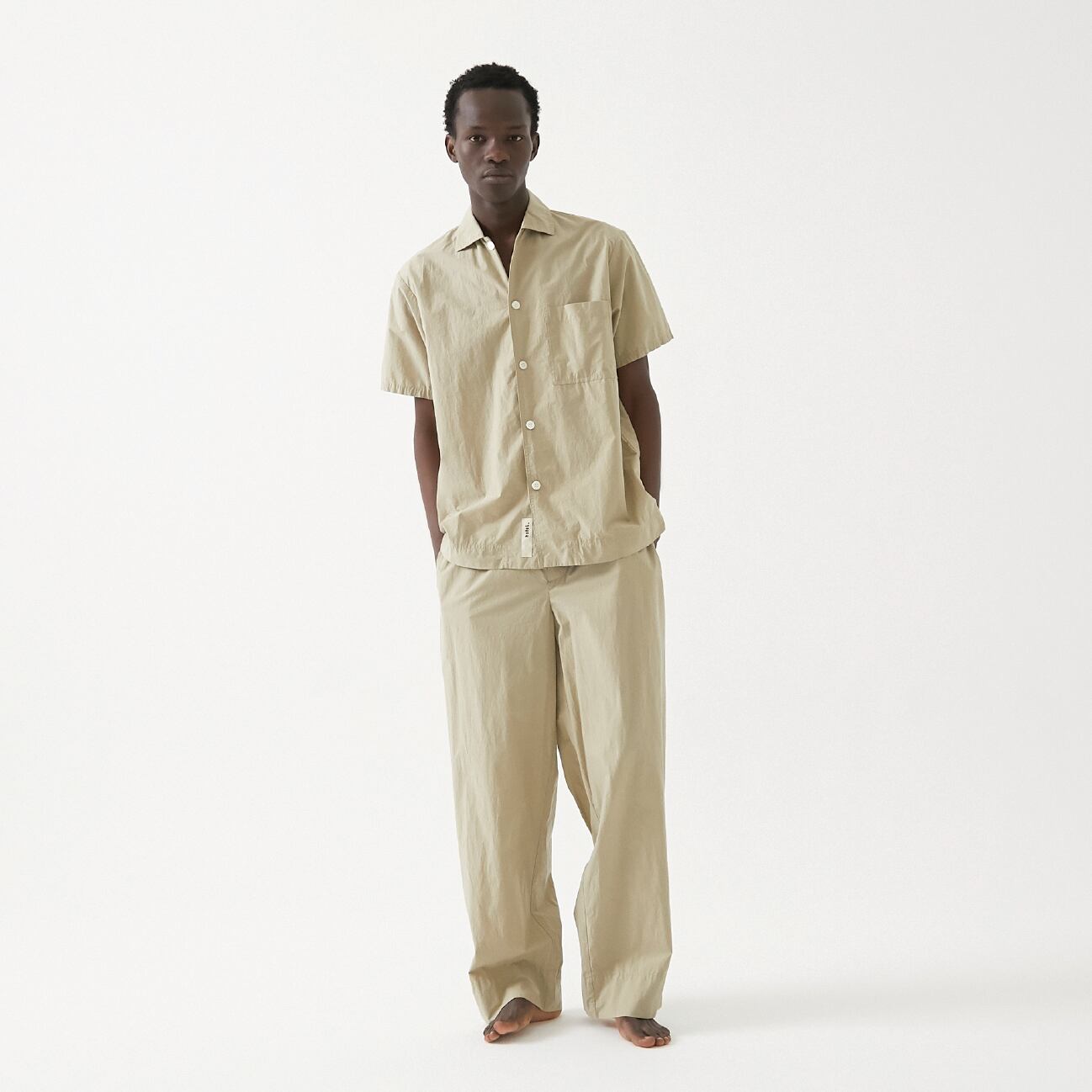 ヴィンテージライクな風合いが魅力のパジャマシャツ。軽くて上質なコットン素材が肌触りよく、洗うたびに風合いと愛着が楽しめる一着です。身体の動きを妨げないシルエットで、汗をしっかり吸収し、快適な睡眠をサポートしてくれるのと、休日や旅先でもワンマイルウェアとしても活躍します。