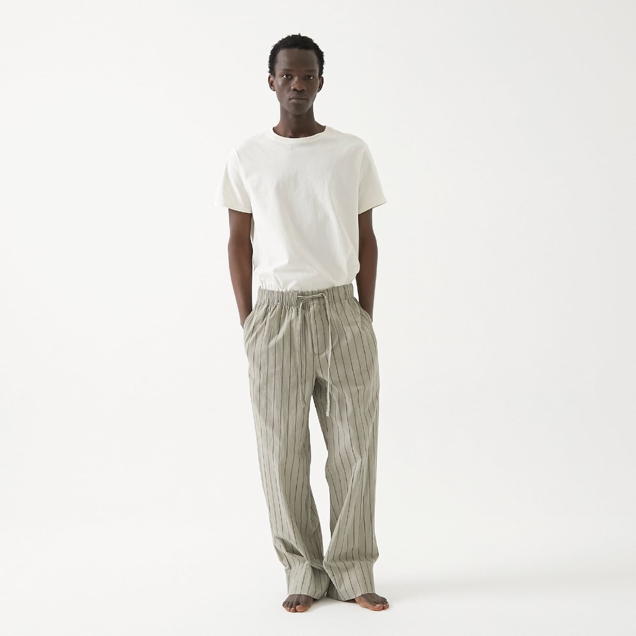 ヴィンテージライクな風合いが魅力のパジャマパンツ。軽くて上質なコットン素材が肌触りよく、洗うたびに風合いと愛着が楽しめる一着です。身体の動きを妨げないシルエットで、汗をしっかり吸収し、快適な睡眠をサポートしてくれるのと、休日や旅先でもワンマイルウェアとしても活躍します。
