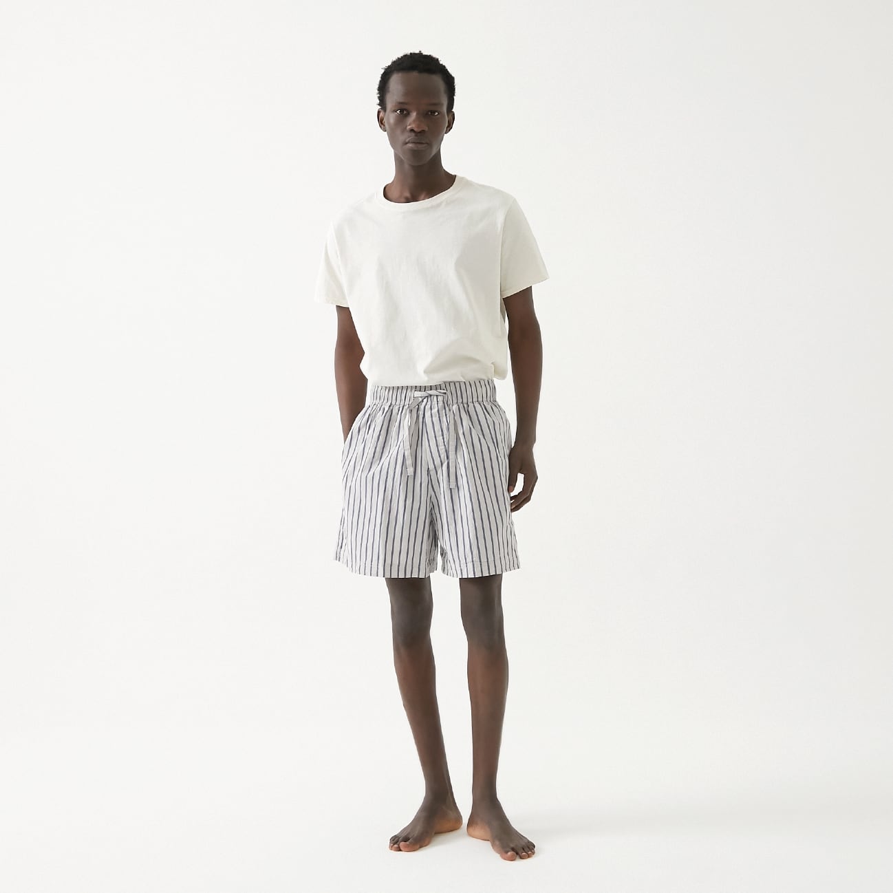 ヴィンテージライクな風合いが魅力のパジャマショートパンツ。軽くて上質なコットン素材が肌触りよく、洗うたびに風合いと愛着が楽しめる一着です。身体の動きを妨げないシルエットで、汗をしっかり吸収し、快適な睡眠をサポートしてくれるのと、休日や旅先でもワンマイルウェアとしても活躍します。